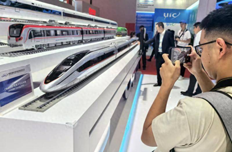 在国铁集团展区,CR450科技创新工程沉浸式体验区排起了长队,观众置身于体验区内,伴随着讲解声,虚拟的CR450动车组扑面而来,人们时而坐在车厢内,感受列车高速飞驰下的平稳运行,时而跳出车厢,俯瞰其在广袤大地上奔驰……;在铁科院展区,CR450BF型复兴号动车组模型成为观众争相拍照、打卡的网红列车;在中国中车展区,CR450AF型动车组数字样车亮相,戴上VR设备,人们可以看到最快高铁列车上,从涂装到内饰的每一个细节。